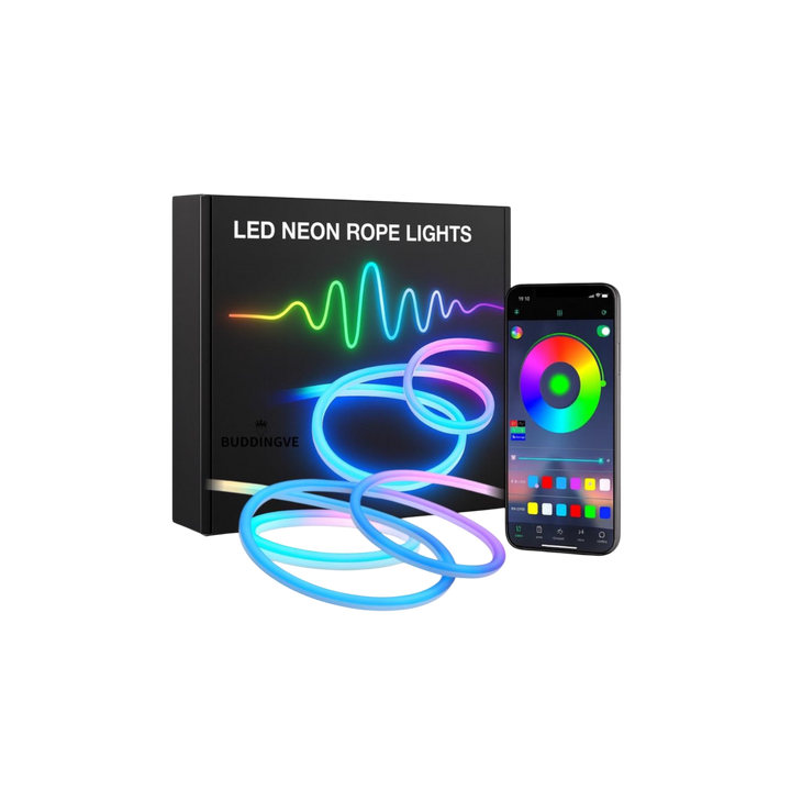 Create the perfect atmosphere anywhere with the BUDDINGVE RGB LED Rope Lights. With 16 million colors, dynamic effects, and a wide 180° light angle, this flexible neon set is designed to transform your home, garden, parties, or even business spaces into a colorful experience.